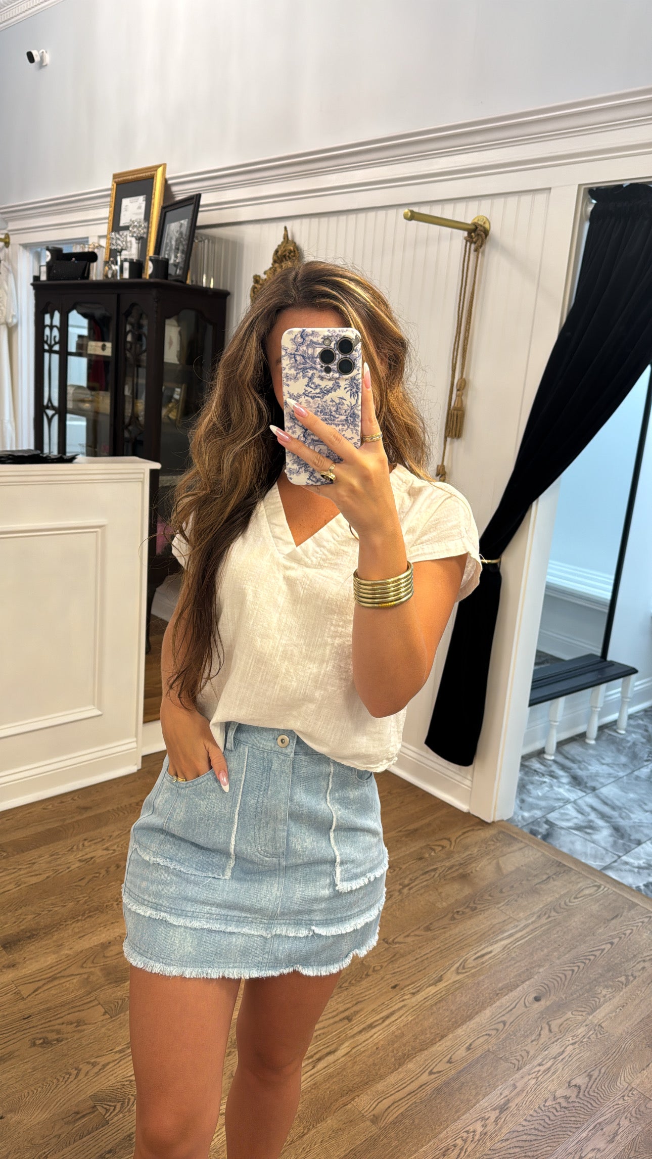 - Casual Mini Skirt - Comfy Back Elastic Waist - Front Button & Zipper - Side Pockets