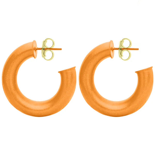 Handmade in Brazil. These painted Small Chantal hoops will appeal to everyone. University inspired colors to show your colors! Powdered to a durable finish.