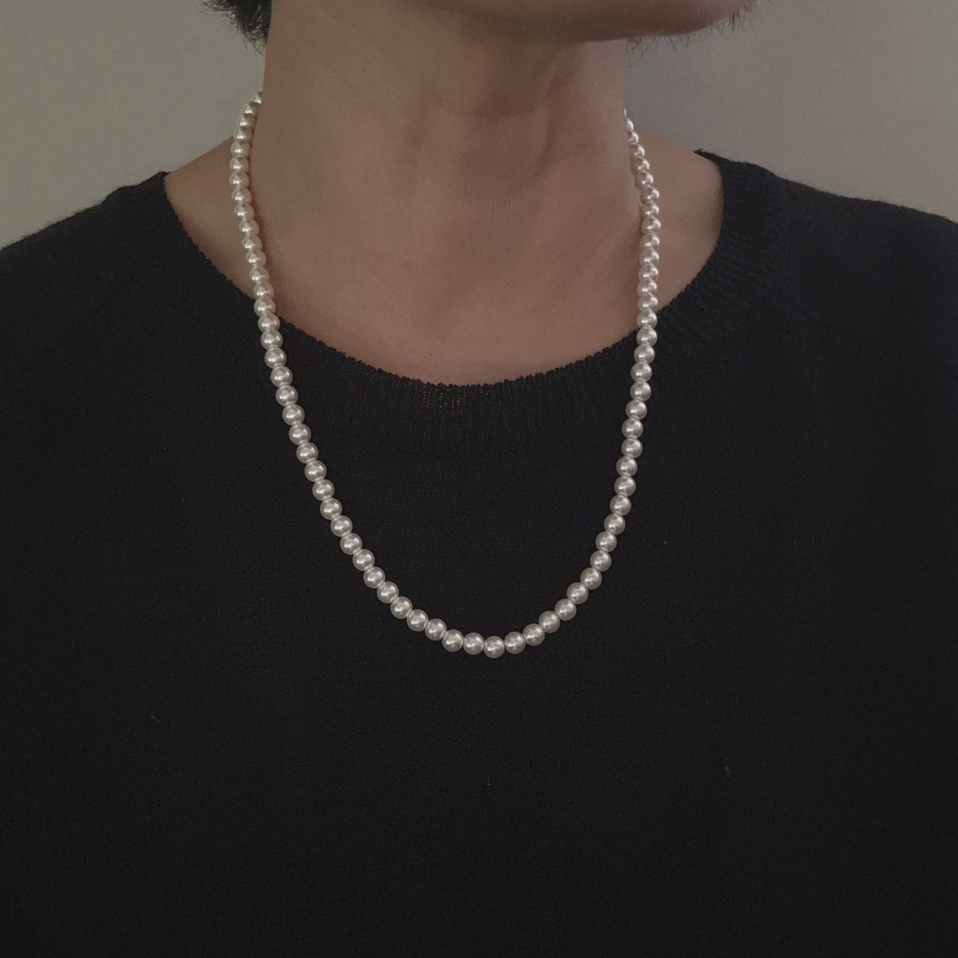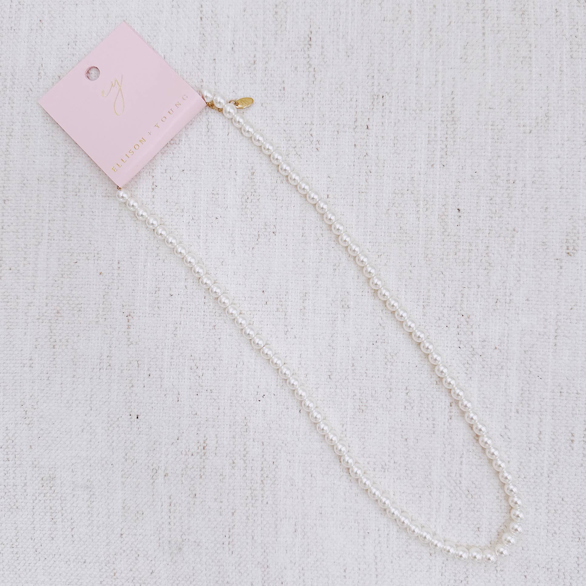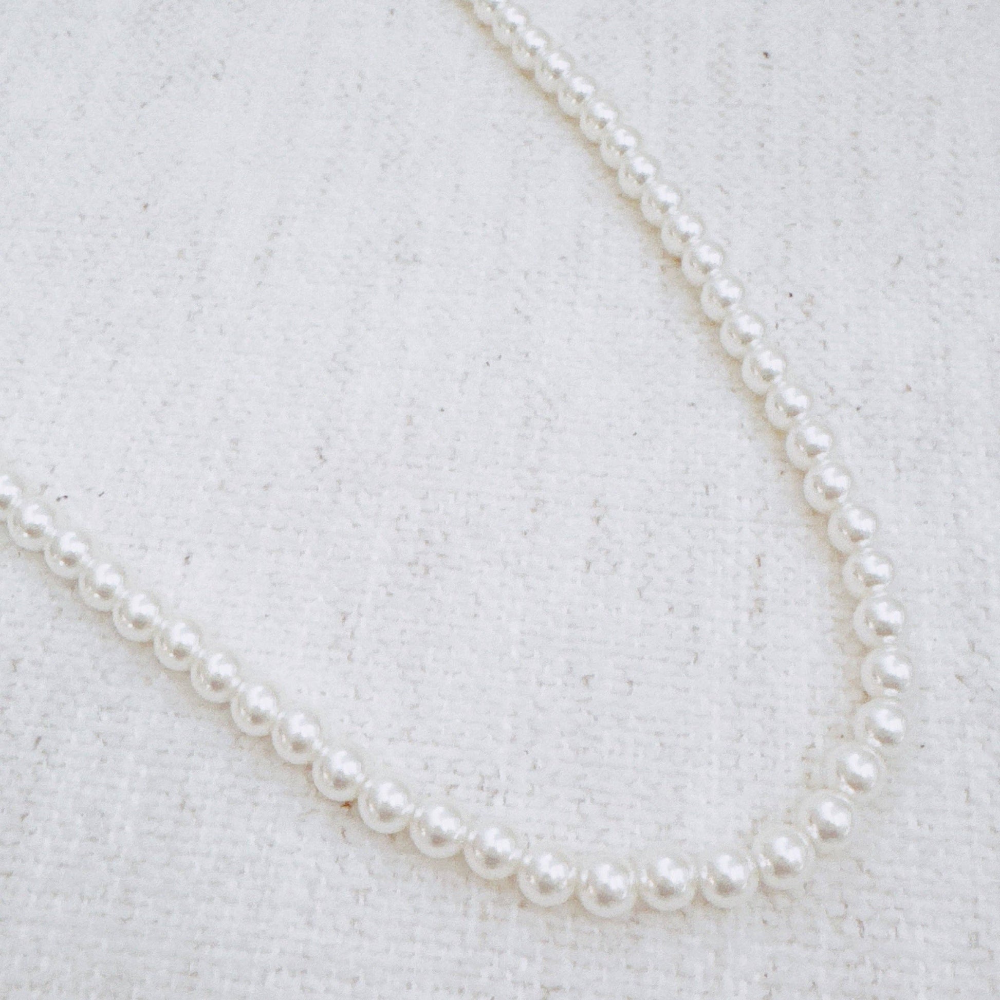 Classic Pearl Design – e Dimensions: Approximately 20" with 2" extender Materials: Glass pearls, gold plated